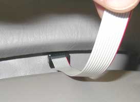 a red stripe) to the right. The 10-pin connector on the end of the cable will be facing down. Pass the connector into the gap a few inches to one side
