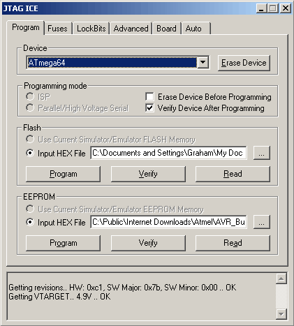 You will need to come back to this page if you update to a newer version of AVR Studio which wants to replace the JTAG ICE interface software. Although this should work according to Atmel's instructions, in practice the new software is not always correctly located, see Automatic Software Updates below.