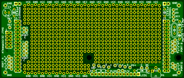 Note that Port D bits 0 and 1 are not pre-connected to the LCD because they often have the alternate function of the transmit and receive lines of the microcontroller's UART.