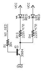 Both LEDs come on when the input, NS_RED, is taken to a logic high at the microcontroller interface. With this circuit, you cannot separately control the light shown to traffic from the North and from the South.